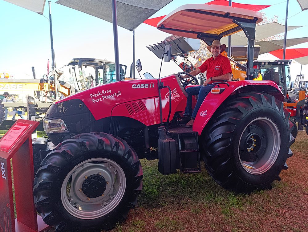 While CASE IH tractors are traditionally red, a bright pink one was sported at Nampo as part of a promotion in partnership with Pretoria FM.
